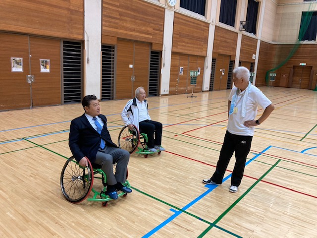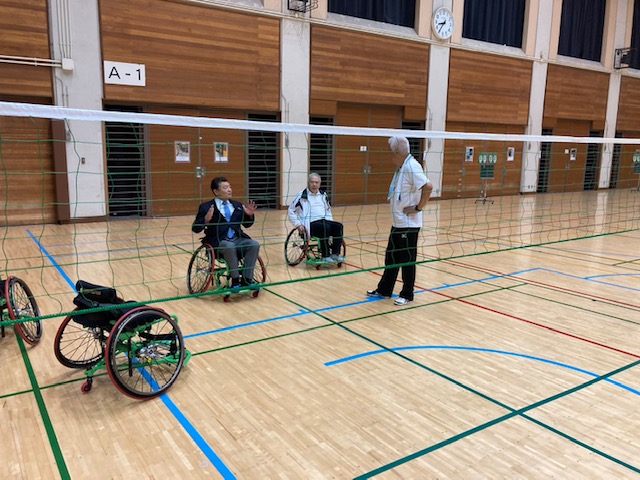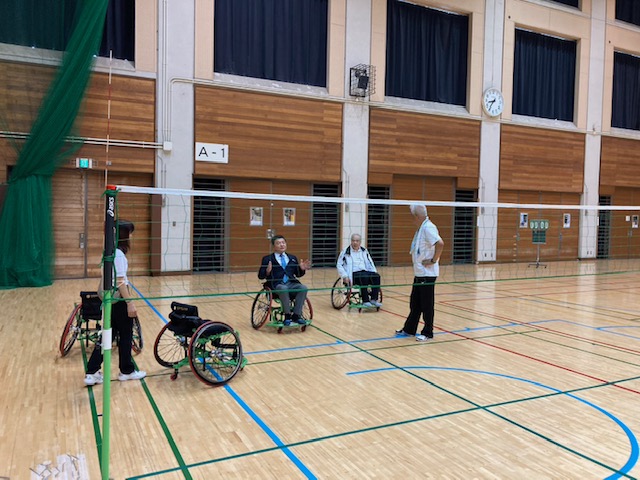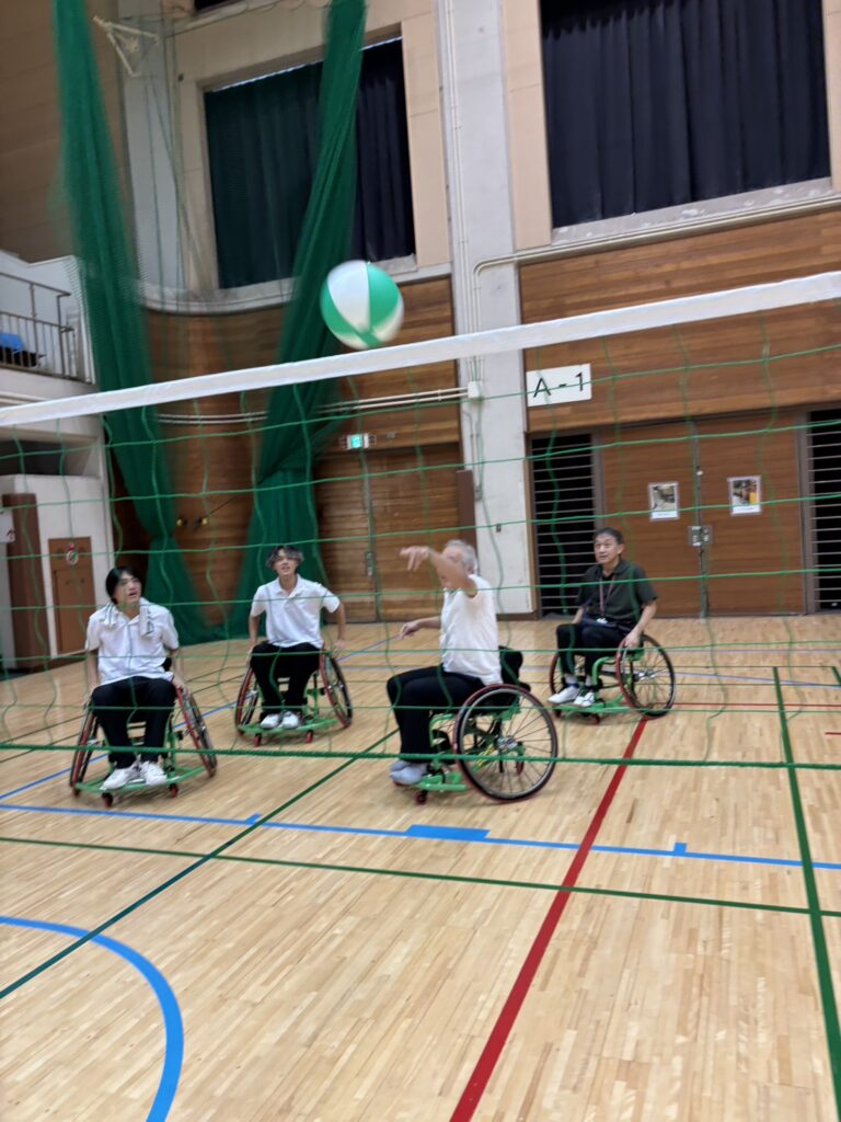 Staff、選手のご協力を得まして《車椅子ビーチボール》実証体験いたしました。